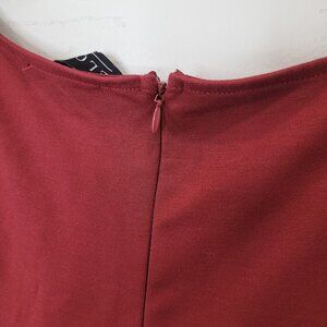Eloquii Long Sleeve Dark Red Fluted Skirt Midi Length Dress brand new with the tags. Extremely flattering and beautiful deep rusty red color. Zipper with hook and eye closure on back. Has comfortable stretch throughout. Unlined but not see through.