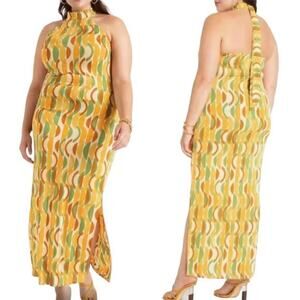 Eloquii Maxi Dress Groovy 70's Funky Sunrise Cabana Halter, size 14