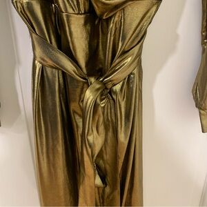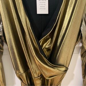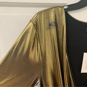 Eloquii Metallic Gold V Neck Belted Wrap Dress Plus Size 18 NWT