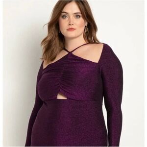 Eloquii Metallic Strappy Cutout Maxi Dress Evening Gown Size 18 Womens Purple