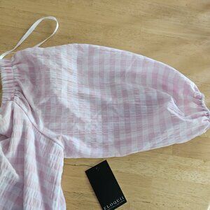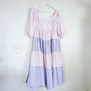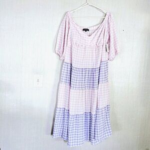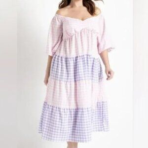 Eloquii Midi Dress Gingham Off the Shoulder Tiered Pink Purple - sz 16 NWT