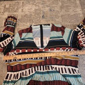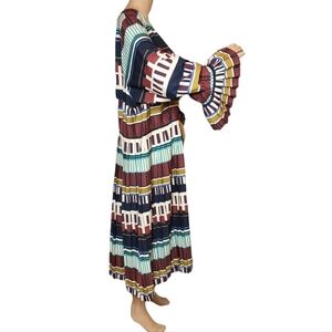 Eloquii Multicolored Pleated Dress Long Sleeve Flare Pleat Cuff Est Size 2X