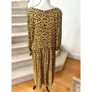 Eloquii Mustard Yellow & Black Animal Print Faux Wrap Midi Dress