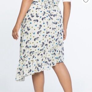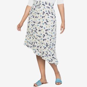Eloquii NEW Floral Print Corset Waist Asymmetrical Flounce Midi Skirt