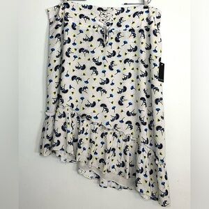 Eloquii NEW Floral Print Corset Waist Asymmetrical Flounce Midi Skirt Sz 22