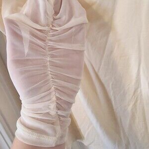 Eloquii NWT Creamy Peach Silky Ruche Mesh Sleeve Square Neck Blouse, Size 18-20