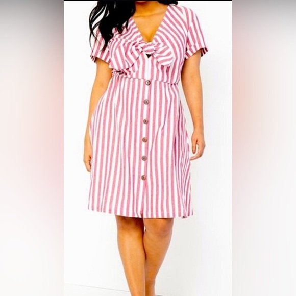 Eloquii NWT Nordstrom Red Striped Button-Down Midi Dress