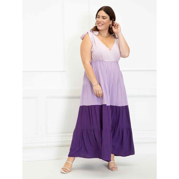 Eloquii | NWT Purple Colorblock Tiered V-neck Maxi Dress | Size 22