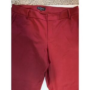 These Eloquii dress pants in size 18 feature a burnt orange color, ideal for a chic and stylish look. Made from a knit fabric with polyester and spandex materials, the pants offer a comfortable fit with a high-rise waist and straight leg design. The pants have a zip closure, flat front, and come with pockets, making them practical for everyday wear. Perfect for the fall, winter, and spring seasons, these business casual pants are suitable for city or preppy-themed outfits.