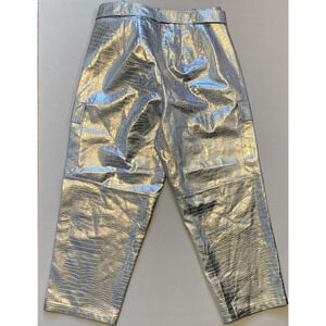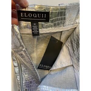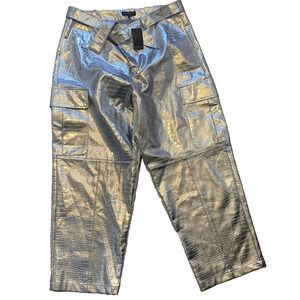 Eloquii Pants Size 18 High Rise Croc Faux Leather Cargo Metallic Silver Festival. New with tags. Zipper, hook & eye closure and belt.