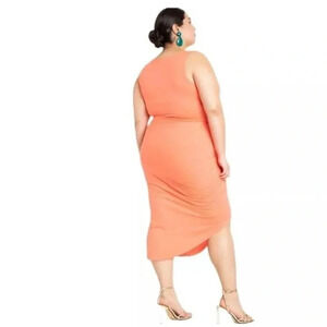 Eloquii Peach Coral Side Ruched Sundress Midi Dress Women’s Plus Size 20 NWT