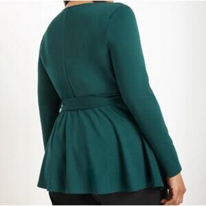 Eloquii Peplum Wrap Long Sleeve Blouse Womens Plus Size 26 Emerald Green