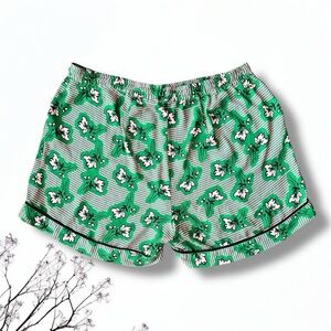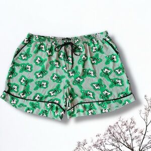 Features two pockets, elastic draw string waist, black piping around the pockets and bottom of the shorts.
