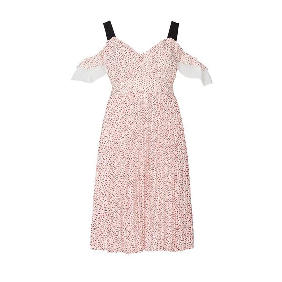 Eloquii Printed Midi Dress Women's Plus 20 White Red Hearts Cold Shoulder RTR