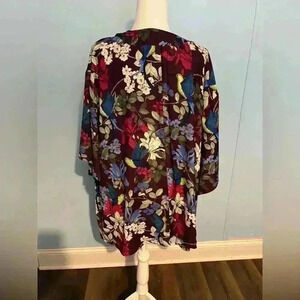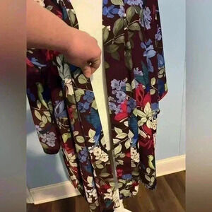 Eloquii printed robe wrap top Beautiful hummingbird floral print on plum background Size 22/24 no stretch Excellent pre-owned condition