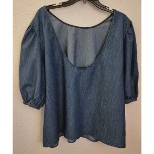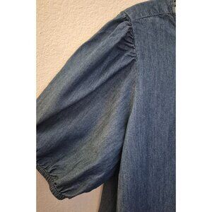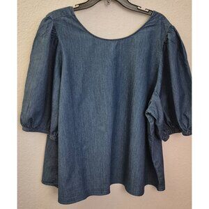 Eloquii Puff Sleeve Denim Cotton Blend Pullover Tunic Top Size 24 EUC