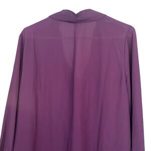 Eloquii Purple Tunic Blouse 18 Large Cuff Career V-neck Chiffon Breezy NEW