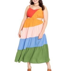Eloquii Rainbow Tiered Cutout Maxi Dress sz 18