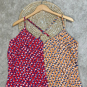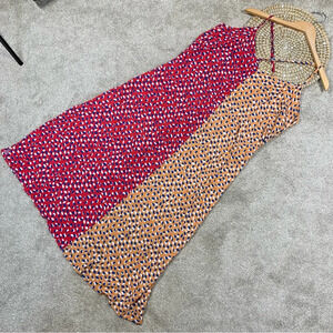 Eloquii Rayon Midi Dress Sleeveless Polkadot Colorblock Red Orange Flowy Size 18