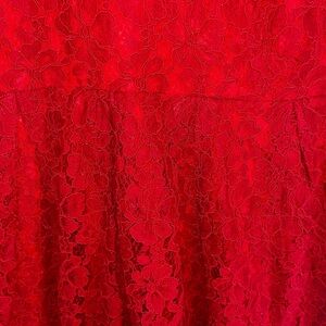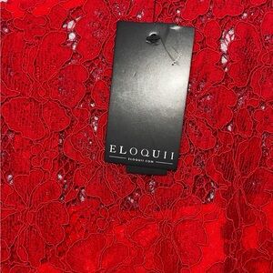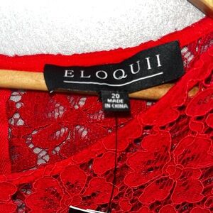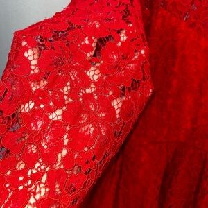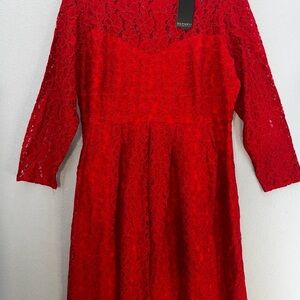 This elegant red dress by Eloquii is designed for wedding guests and cocktail events, featuring graceful bishop sleeves and a classic crew neck. The A-line silhouette and midi length create a flattering and sophisticated look, perfect for any special occasion.