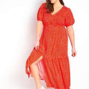 Eloquii Red Button Down Polka Dot Tiered Short Sleeve V-neck Maxi Dress