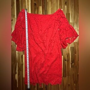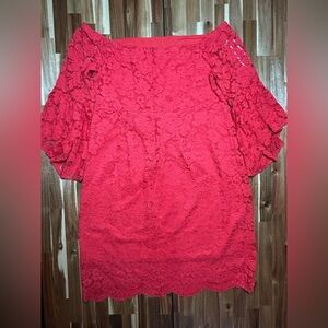 Eloquii Red Lace Fitted Shift Dress Off the Shoulder Bell Flare Sleeves Size 18