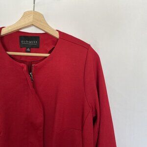 Eloquii Red Long Sleeve Ruffle Detail Knee-Length Jacket With Front Zipper Closu