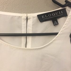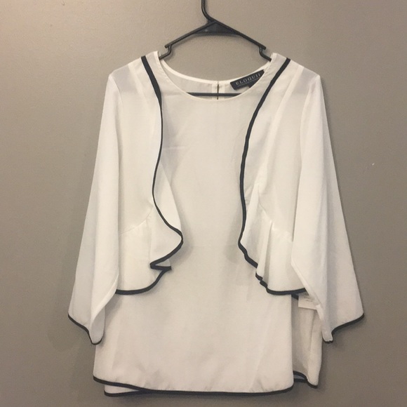 White dress shirt with black piping detail on the ruffle, quarter length sleeve