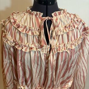 Charming dress with delicate ruffles. Soft pink hue adds elegance. Perfect for brunch!