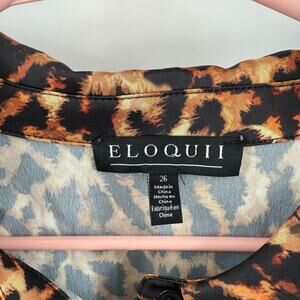 Eloquii Shirt Size 26 NWT Leopard Satin Animal Print Button Down Plus Curvy