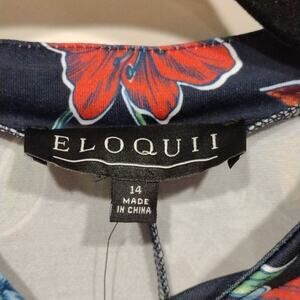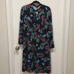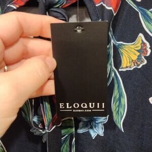 Eloquii Size 14 Tropical Print Dress Navy Midi Career Business