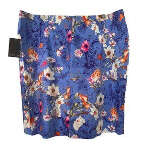 Eloquii Size 20 Floral Print Pencil Skirt Blue Multicolor Cotton Blend