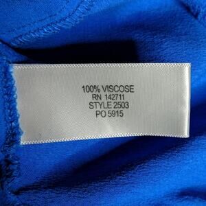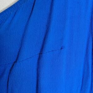Cobalt blue sleeveless top. Button/keyhole back closure. Side slits. Ties at back. Expected wear.