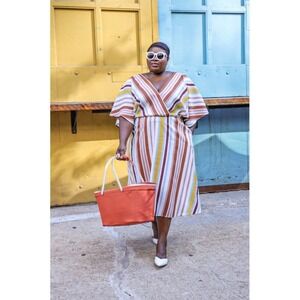 Eloquii Striped V-neck Midi Dress Women's Size 20