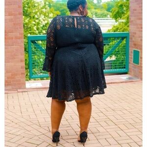 Eloquii Studio Lace Fit and Flare Dress Black Bell Sleeve Women’s Size 16
