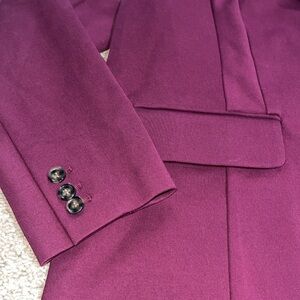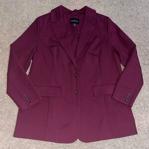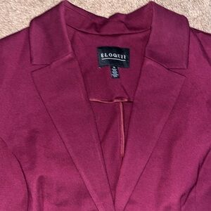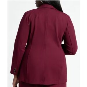 Eloquii The Ultimate Stretch Long Two Button Blazer Maroon Banner 14. Tailored fit. Unlined. Notch lapel, single breasted two button closure. Shoulder pads, long sleeve. Welt pockets w/flaps. Button cuffs. Back slit. Approx measurements: 21“ pit to pit & 30.5“ length. Great pre-owned condition. No stains/flaws. Smoke/pet free home. Offers welcome. Bundle & save. Ship same/next day. Packaged w/ care.