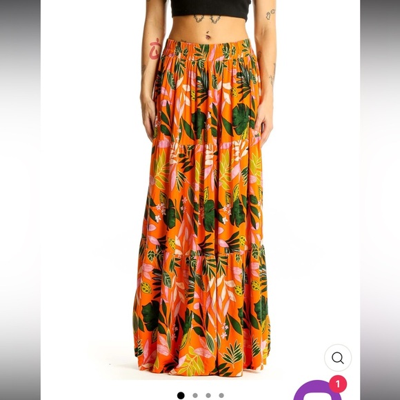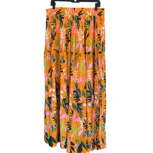 Eloquii Tiered Long Skirt Plus Size 14/16 - Tropical Floral Print Orange & Green