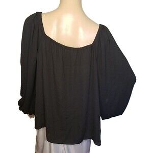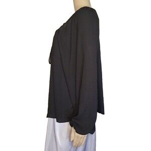 Look stylish and chic with this beautiful black chiffon blouse from Eloquii. The top features a scoop neckline and long sleeves with a pullover closure, making it perfect for both casual and party/cocktail occasions. The blouse is made of lightweight and sheer polyester material, making it suitable for all seasons. This regular fit blouse is ideal for women looking for a classic and basic top to add to their wardrobe. It comes in size 20 and is machine washable for easy care. The blouse is crafted in China and has no vintage or handmade features. Add this solid patterned top to your collection and elevate your fashion game effortlessly. Bust 50", length from shoulder 26.5".