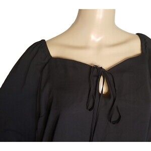 Eloquii Top Women's 20 Black Chiffon Blouse NWT Keyhole Neck Tie Closure T37