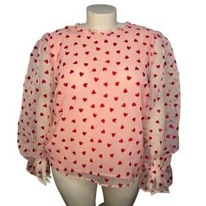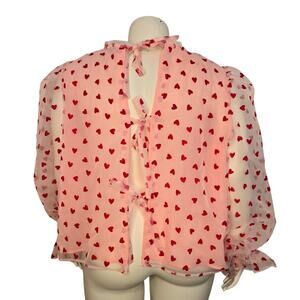Eloquii Top Womens Plus Size 24 Pink Red Velvet Heart Sheer Long Puff Sleeve Bow Tie Open Back Coquette Feminine Romantic
