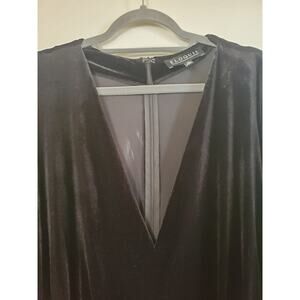 Style: Classic velvet jumpsuit. V-neckline. Long sleeves, with puffs at shoulder. Accentuated waistline. High waistline and wide legs. Hip pockets. Soft, velvet fabric, heavy weight. Stretchy. 93% Polyester, 7% Spandex. Back Zip Closure. Made in China. Machine Washable.
