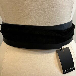 Eloquii Wide Obi Wrap Belt Black Faux Leather Suede NWT