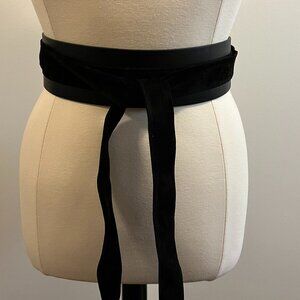 Brand new with tags (NWT) Eloquii wide obi wrap belt in sleek black. Features a soft suede wrap design with faux leather trim that ties beautifully at the waist. Perfect for elevating dresses, tunics, or coats with a chic, cinched silhouette. Adjustable fit thanks to wrap-around tie closure.