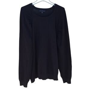 Eloquii, Women 4x, Black-- Round Neck, Puff Long Sleeve, Ruched Shoulder, Lightweight Knit Sweater