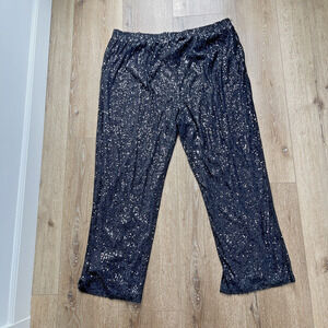 Eloquii Women Plus Size 24 Black Sequin Pants Pull On Split Front Event Party