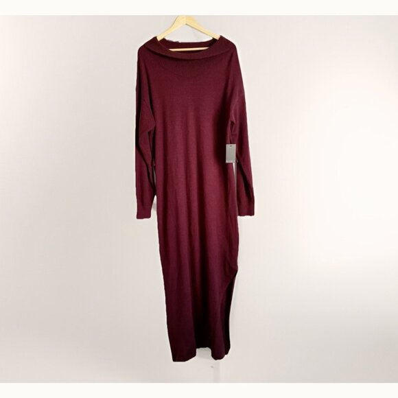 Eloquii Women’s 16 Cowl Neck Side Split Sweater Midi Dress Burgundy Stretch