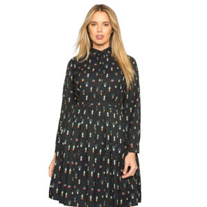Eloquii Womens Black Cactus Succulent AOP Whimsical Twee Pleated Shirt Dress
