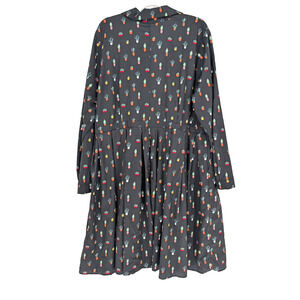 Polyester shirt dress with button up bodice and pleated skirt. All over multicolored succulent print.