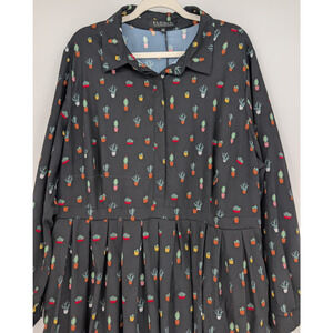 Eloquii Womens Black Cactus Succulent AOP Whimsical Twee Pleated Shirt Dress 22