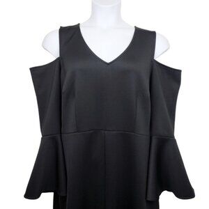 Eloquii Womens Black Cold Shoulder Flare Sleeve Scuba Sheath Dress Size 16